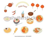 아시아 음식이요 한국음식, 타이 음식, 중국 스톡 벡터(로열티 프리) 2353140099 | Shutterstock
