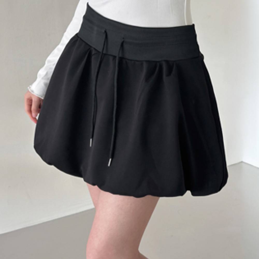 블랙 허리밴딩 미니 치마바지