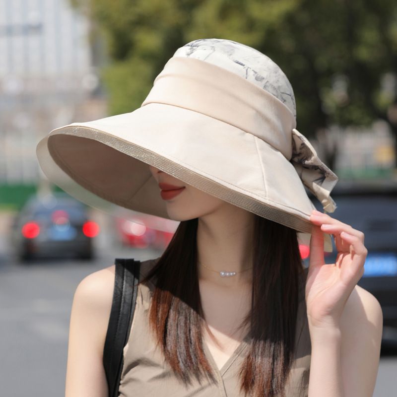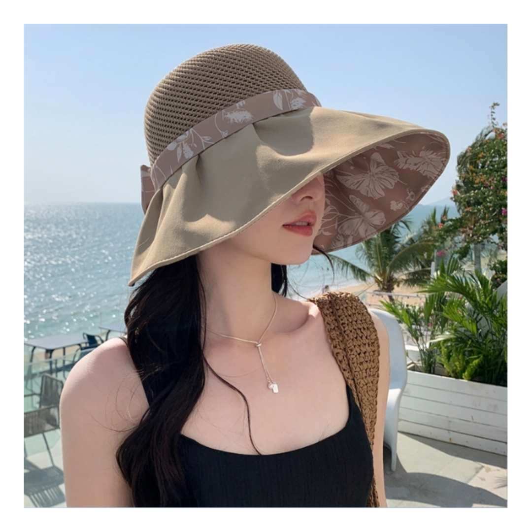 리본 패턴 나염 와이어챙 와이드 여성모자 챙넓은 여름모자 : 에르비스토어