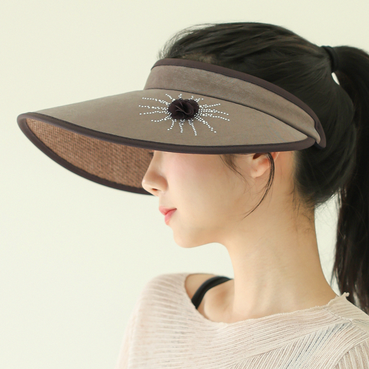 여름 야외활동 자외선 차단 넓은 챙 디자인 여성 햇빛 가리개 썬 바이저 모자 : 디노상회 DINO