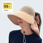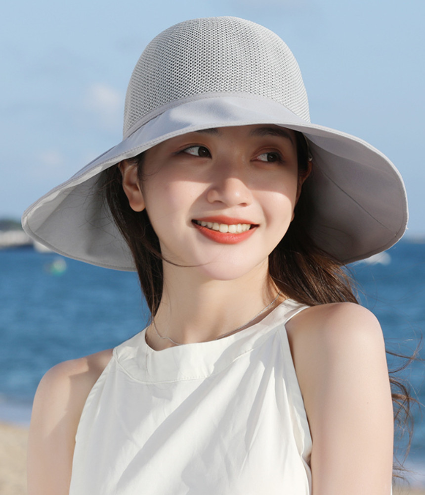 스타일아유 여성용 우아한 망사 리본 장식 썬캡 여름 넓은 챙 자외선 차단 바이져 버킷햇 CA0148 : 스타일아유